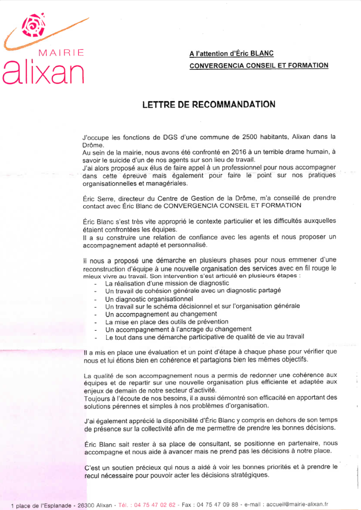 A travers cette mission de conseil, nous avons assisté la Commune d’Alixan pendant une période de crise significative. Après un audit complet de tous les services, notre accompagnement a permis à la commune non seulement de surmonter la crise, mais aussi de renforcer durablement son organisation.
