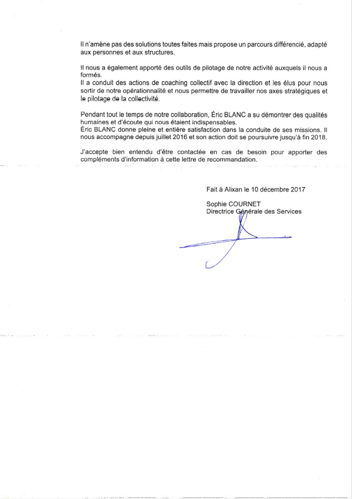 Référence auprès de Mme Sophie Cournet, ancienne DGS d’Alixan, ou de Mme Aurélie Larroque, ancienne Maire.