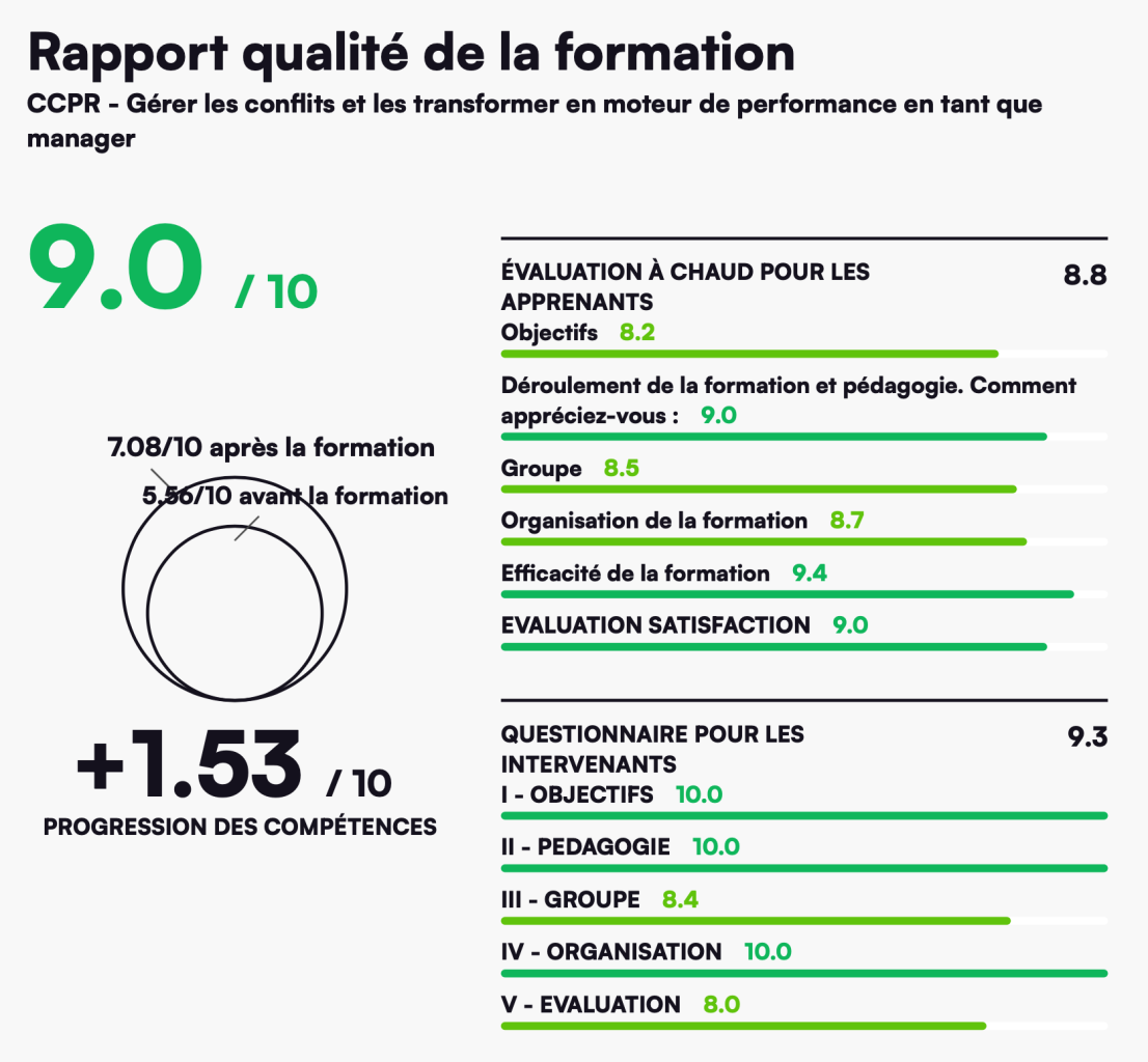 Les évaluations réalisées à l’issue des formations mettent en évidence un